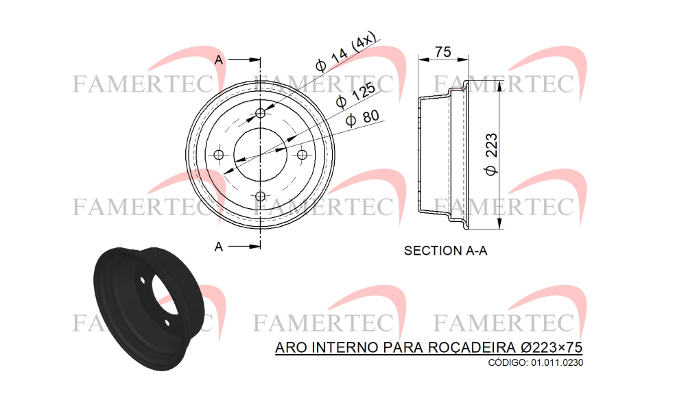 ARO INTERNO PARA ROÇADEIRA Ø223×75