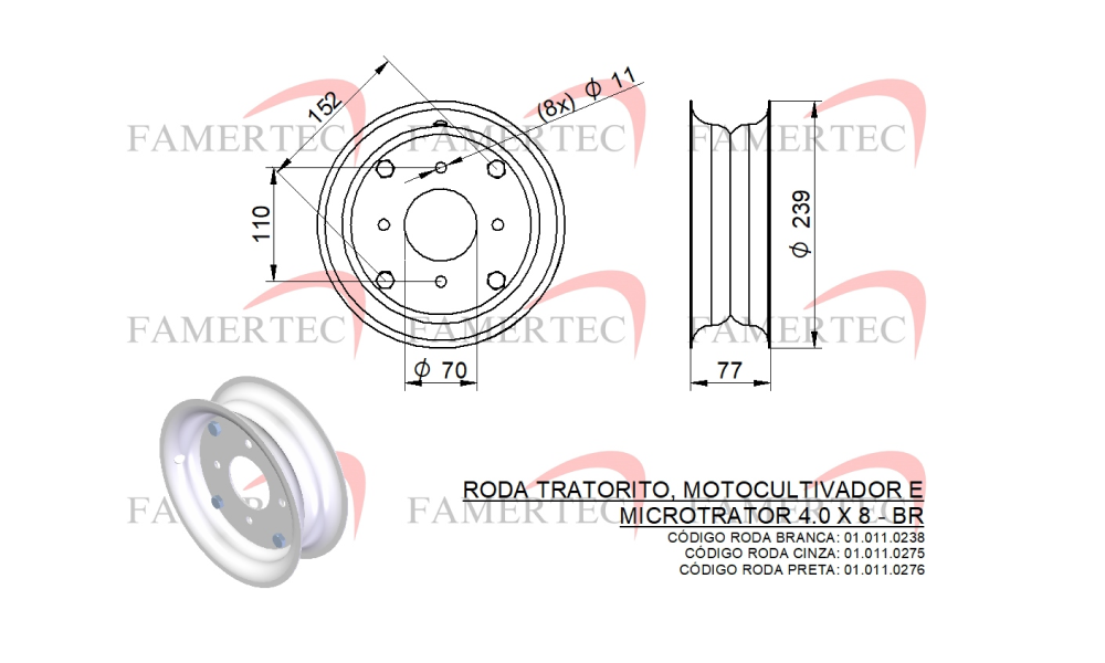 RODA PARA TRATORITO, MOTOCULTIVADOR E MICROTRATOR 4.00 X 8